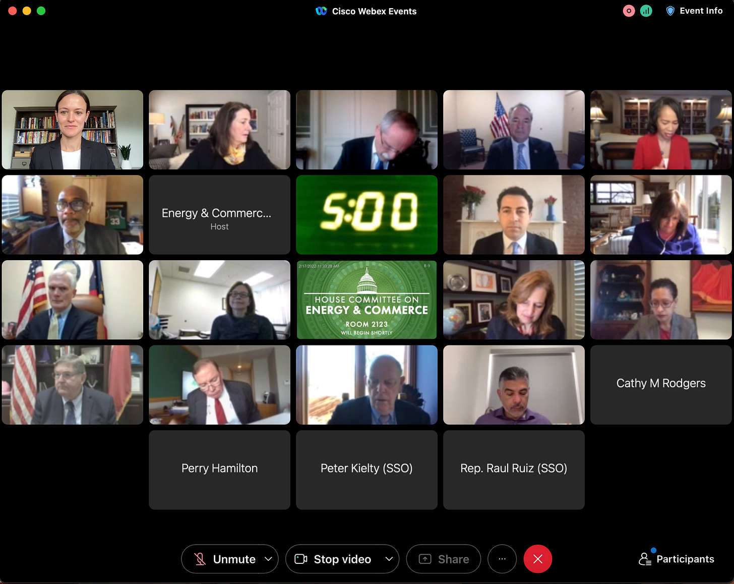 Each witness—myself and four others—was given five minutes for opening statements. Then, each of the 19 members of the subcommittee (plus a few members of other subcommittees who chose to “waive on”), had five minutes to ask questions of the witnesses. A countdown clock featured prominently on WebEx. This didn’t stop members from spending 3 to 4 minutes of their allotted time providing long-winded stories and opinions. Sometimes, they added a question mark at the end. At one point, a member fell asleep. At multiple points, members took phone calls or simply walked away.