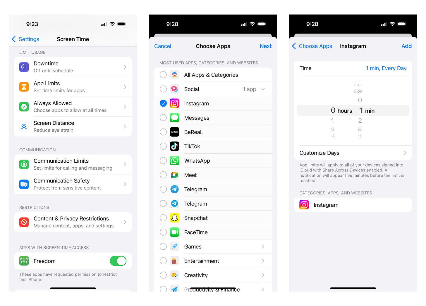 As far as I can tell, there is not a great way to completely block individual apps (apart from the Downtime approach above), but you can set time limits on particular apps. Just make sure you set the limits lower than you’d think.