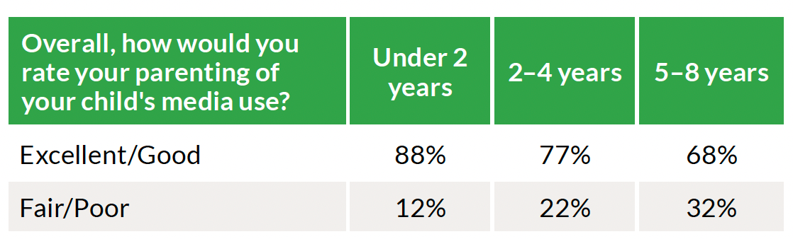 Ultimately, to me, this data suggests that parents need more support. Their confidence in managing screen use seems to waver as kids get older, and a high percentage raise significant concerns about about how much time their kids are spending on screens and what they’re seeing on them.