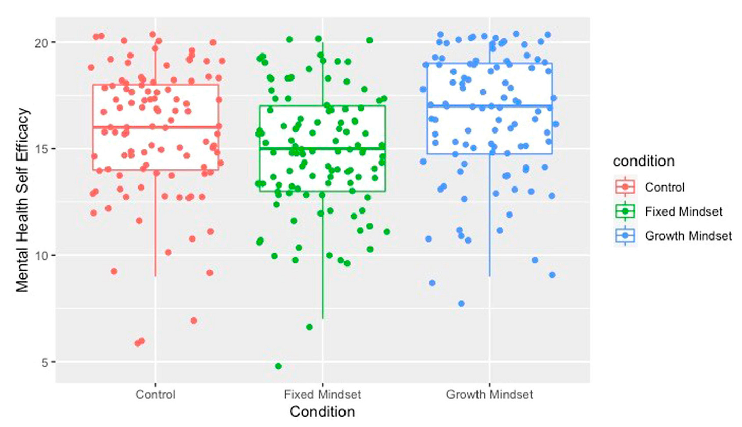 The most important finding of the study was around mental health self-efficacy, or the belief that there are things people can do to help themselves recover from or improve symptoms of mental illness. After viewing the tweets, participants in the “Growth mindset” condition reported higher mental health self-efficacy, compared to participants in the “fixed mindset” condition.