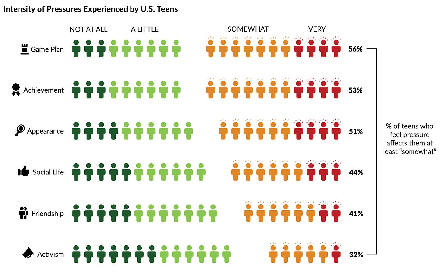 Here are the six types of pressure, along with the percent of teens who reported experiencing each:
